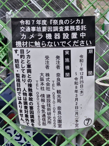 ・奈良公園向けの電光掲示板に『鹿の事故多発』を表示しました。